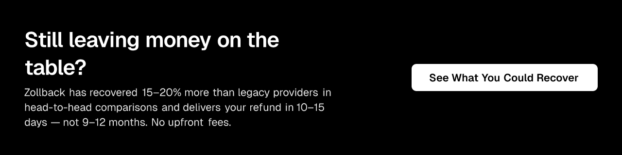 Fee structures vary. Legacy providers may charge retainers or high percentages. Modern providers like Zollback use performance-based pricing, taking a tiered percentage of the refund actually recovered. This means there are no upfront costs, and our incentives are fully aligned with maximizing your refund.