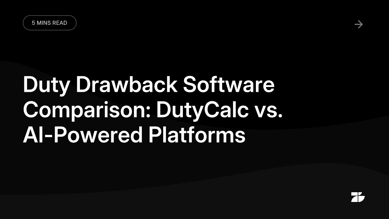 This article breaks down the two dominant approaches to duty drawback software: the traditional model, anchored by industry stalwart DutyCalc, and a new generation of AI-powered platforms that are rebuilding the process from scratch. We'll compare them on speed, data handling, refund optimization, and accessibility — so you can cut through the noise.