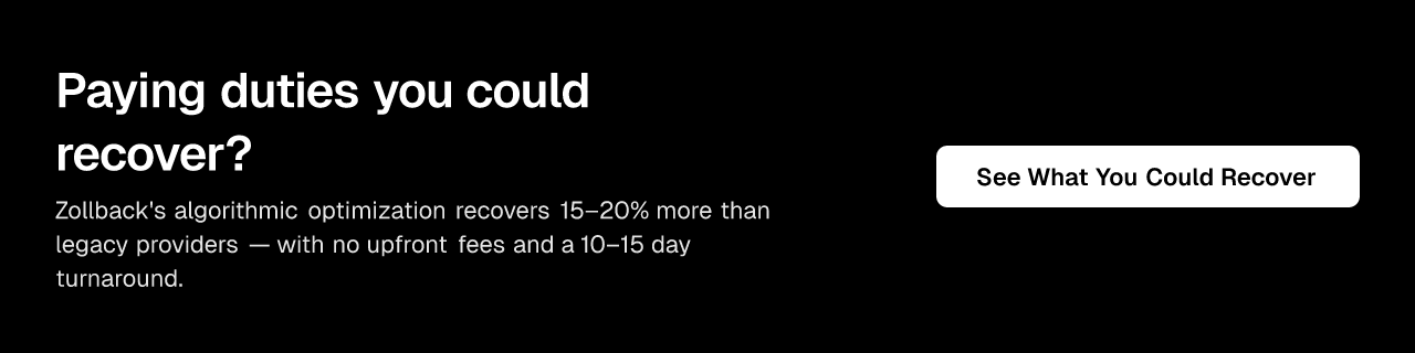 Zollback's platform combines this AI-driven optimization with expert compliance review and performance-based pricing, making drawback accessible to companies of all sizes.